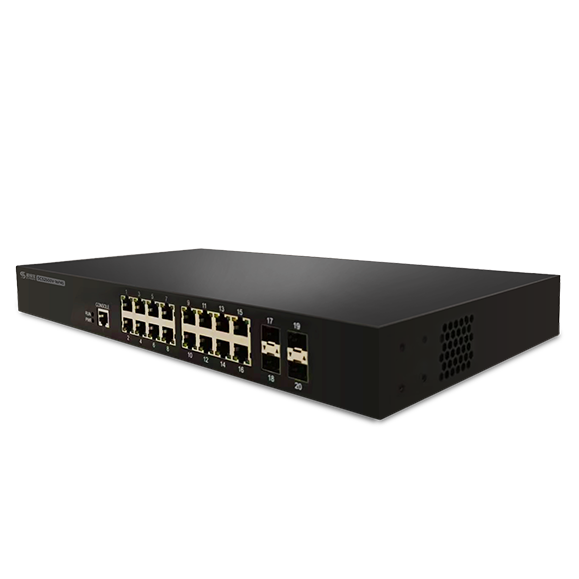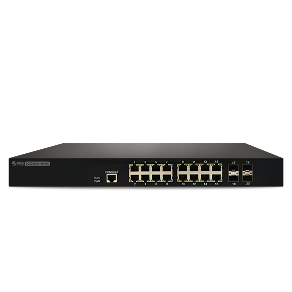 SCS2500V-16P4S:16端口千兆电(POE+),4端口千兆光,二层网管以太网POE交换机(1个CLI口,16个千兆POE+电口,4个千兆光口SFP,标配电源AC220V,POE功率260W,风扇散热,1U高度,19寸机架式安装)