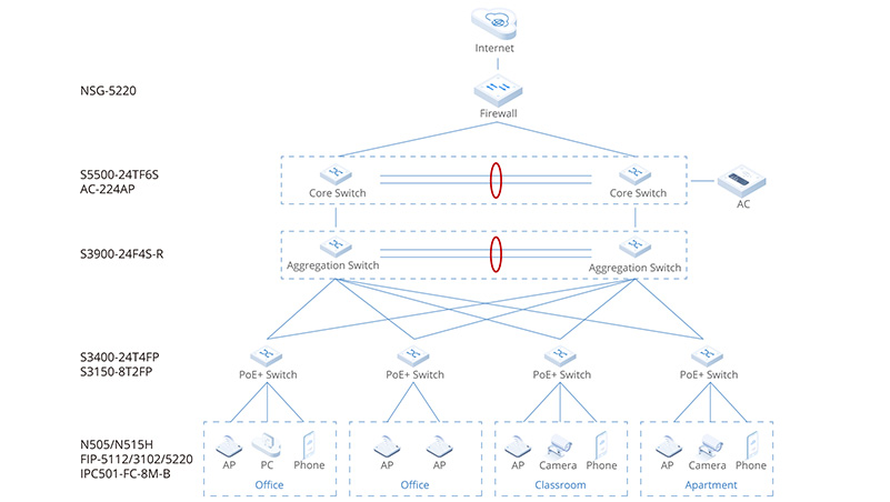■ 设备级安全防护:支持防范DoS、广播风暴、大流量等对设备的攻击;支持命令行分级保护;