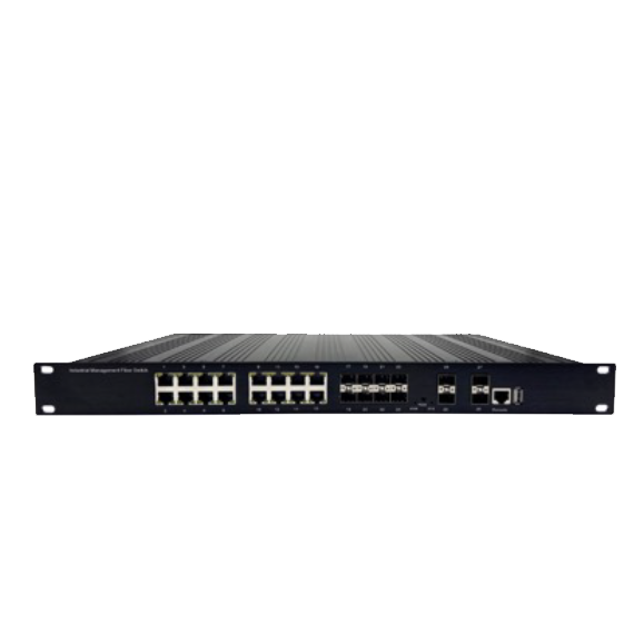 二层网管工业级(铝合金),16个千兆电口,8个千兆光口SFP, 4个万兆光口SFP+、支持环网+WEB/CLI管理+SNMP+VLAN