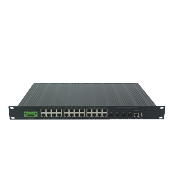 二层网管工业级(铝合金),24个千兆电口, 4个万兆光口SFP+、支持环网+WEB/CLI管理+SNMP+VLAN