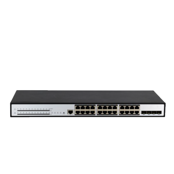 准三层以太网交换机(1个CLI控制口,24个千兆电口,4个万/千兆SFP+光口;标配电源AC220V,风扇散热,1U标准机架式);POE机型可选;